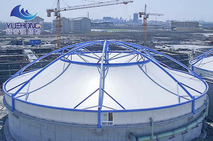 污水池膜結構是人們常說的加蓋在污水池上的密封罩,因使用的是新型膜結構工藝。根據(jù)不同的方式區(qū)分,污水池膜結構可分為不同的種類,鋼支撐反吊膜、懸索反吊膜、無骨架密封集氣罩,依次以鋼構為支撐、懸索支撐、空氣支撐,其中鋼支撐反吊膜使用范圍最廣。